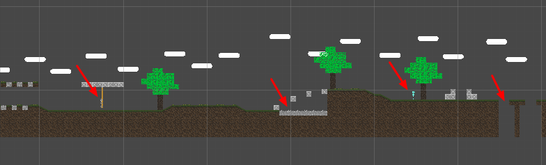 Niveauet endte med at indeholde 4 typer forhindringer: pigge, zombier, svingende økser og jordhuller: