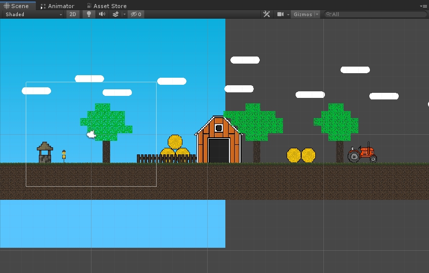 Nu da spilleren og fjenderne var klar, flyttede jeg for at skabe et første niveau, som jeg besluttede at lave Farm-tema. Så jeg gik i gang med at lave alle de sprites, der er nødvendige for niveauet: