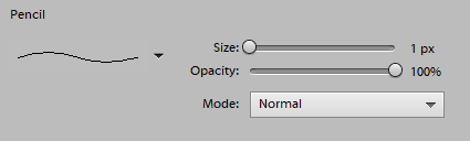 - Vælg blyantværktøj og indstil dets størrelse til 1 px og opacitet til 100 %