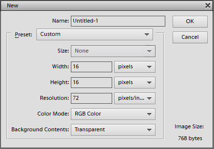 - Indstil bredden og højden til noget lille (i mit tilfælde starter jeg med at lave en jordflise, så bredden og højden er sat til 16)