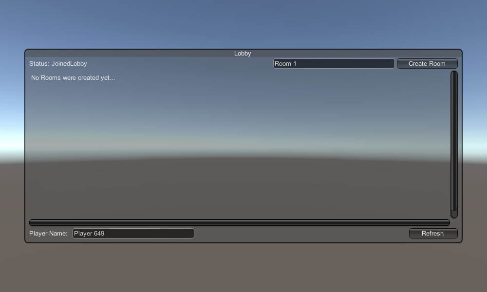Lad os starte med at oprette en lobbyscene, der vil indeholde lobbylogik (gennemgang af eksisterende rum, oprettelse af nye rum osv.):