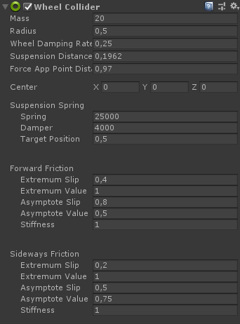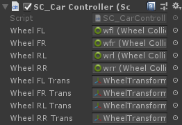 - Tildel WheelTransform-objekter til Wheels-arrayet