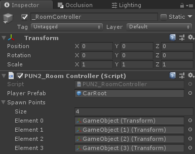 - Vedhæft et PUN2_RoomController-script til _RoomController-objektet