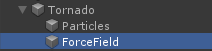 - Flyt "ForceField" inde i "Tornado" GameObject og skift dets position til (0, 0, 0)