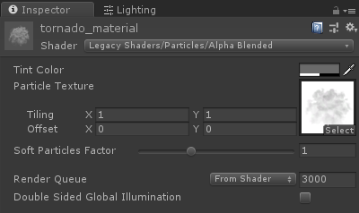 - Skift dens Shader til "Legacy Shaders/Particles/Alpha Blended"